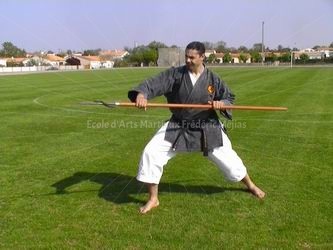 La lance ainsi obtenue se manie à peu près comme un Bō ; si l’on excepte son équilibre spécifique, son poids assez conséquent et la présence de ce fameux crochet. Ce dernier se doit d’accrocher l’arme adverse, l’armure ou le col de l’adversaire ; et non votre propre coude ou vos côtes flottantes!