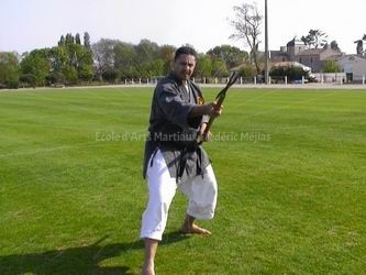 Le kata de Nunti-Bō se pratique par ailleurs avec deux Saï, passées dans la ceinture et portées dans le dos. Des gestes de lancer de ces deux armes d’appoint figurent à la fin de ce kata.